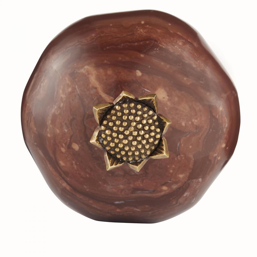 The crown jewel of the fruit world, a marble pomegranate of the deepest carmine is ripe for display on any surface. Inspired by the classical Greek fertility symbol and topped with a vintage brass stem, our unique sculpture can sit straight or be displayed at an angle. Finish will vary.