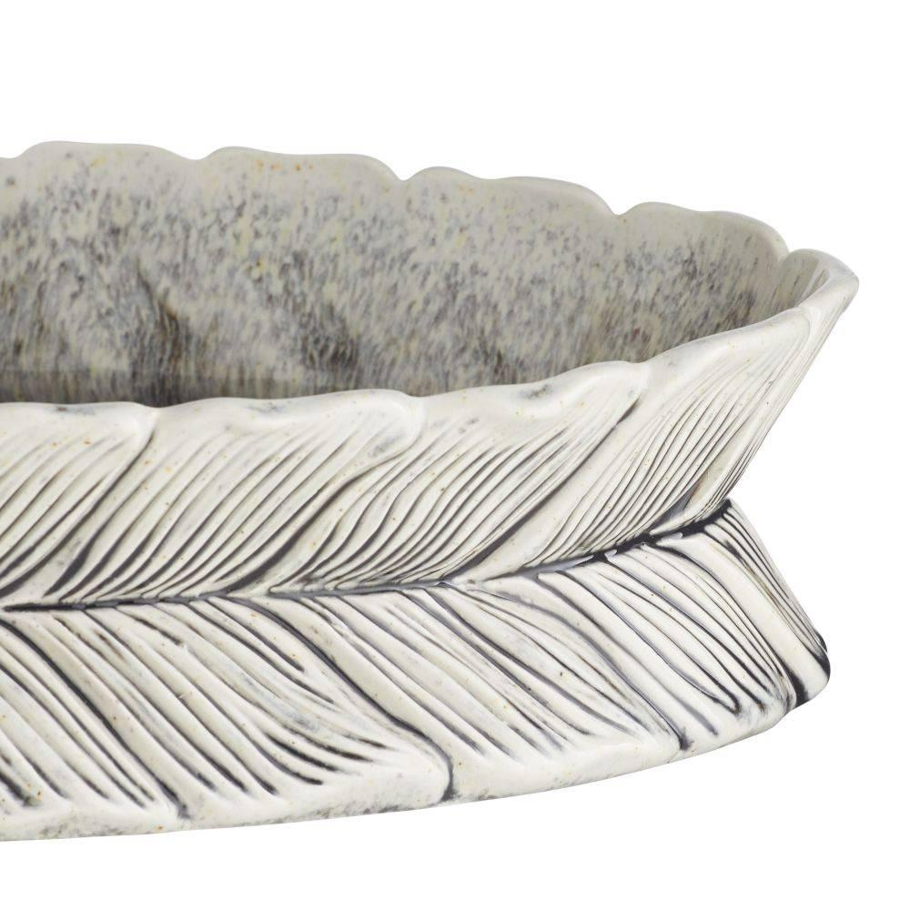 Resembling gathered leaves or feathers; the layered shapes of this porcelain centerpiece draw the eye with the illusion of subtle movement. An ice-reactive glaze highlights every detail with textural definition. Finish will vary.