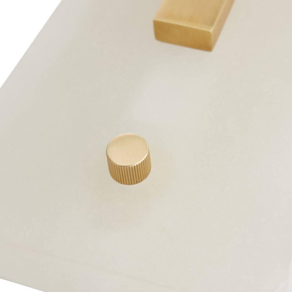 Our angular update of a classic, this LED light offers a restrained luxury wherever it is placed. A paddle shade of chattered antique brass-plated iron mirrors the shape of the white alabaster base. The Genevieve task lamp features a dimmer switch that adjusts the illumination to your needs. Finish will vary.