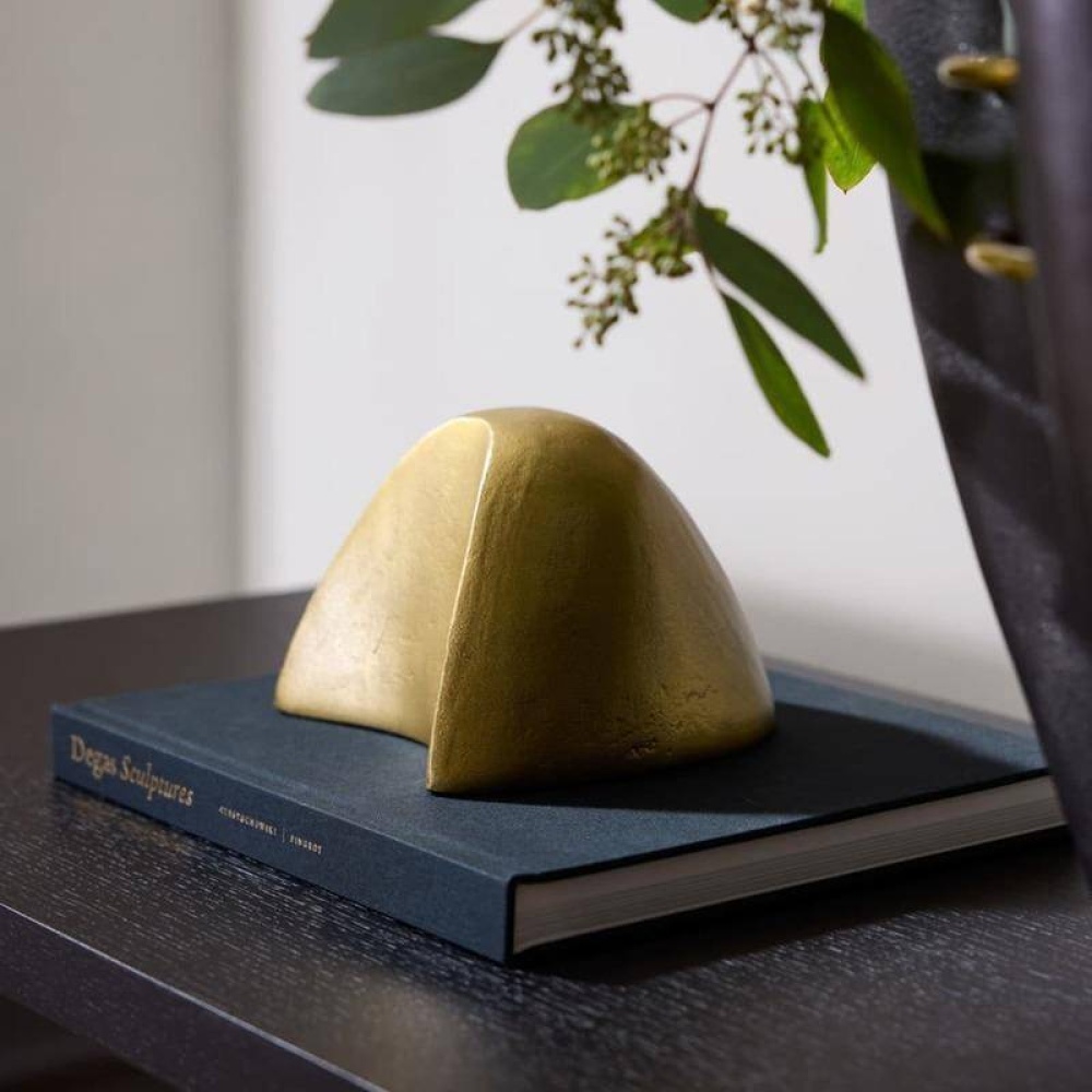 Our highly polished accent piece of antique brass cast aluminum embraces the modern equestrian aesthetic. Inspired by a horse's hoof, it was designed to draw the eye from every angle. Finish will vary.