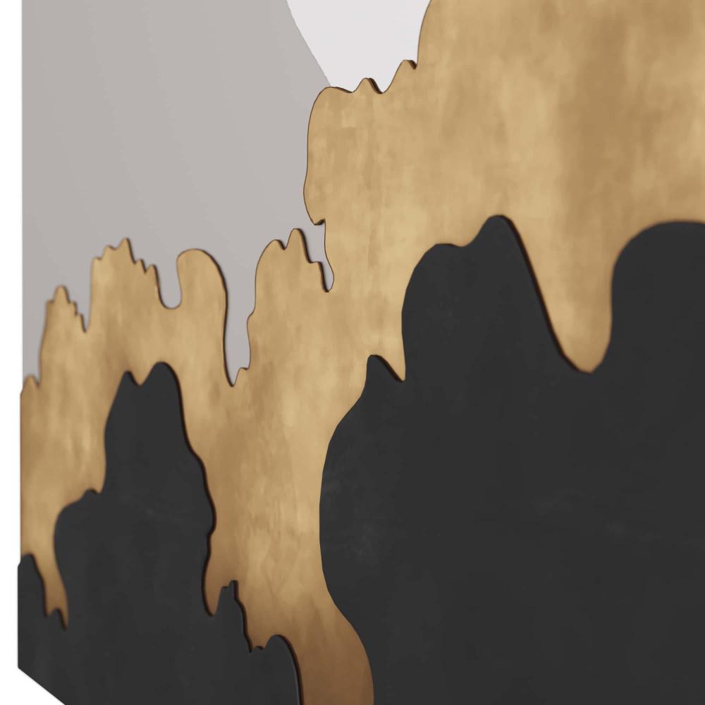 A NEW MIRROR WE JUST HAVEN'T SEEN BEFORE. THE MIXED METAL FINISHES ON THE CLOUD SILHOUETTE BASE HOLD THE ANTIQUED MIRROR TOGETHER. THE LOW HORIZON LINE OF THE BRONZE AND ANTIQUE BRASS BASE LEAVES UNENCUMBERED REFLECTION FOR THE UPPER AREA. ARTWORK AS WELL AS A USEFUL PIECE, USE IN A POWDER ROOM OR OVER A HALLWAY CONSOLE TO MAGNIFY SPACE AND LIGHT. THE MIRROR IS FITTED WITH A CLEAT FOR HANGING. FINISHES WILL VARY.