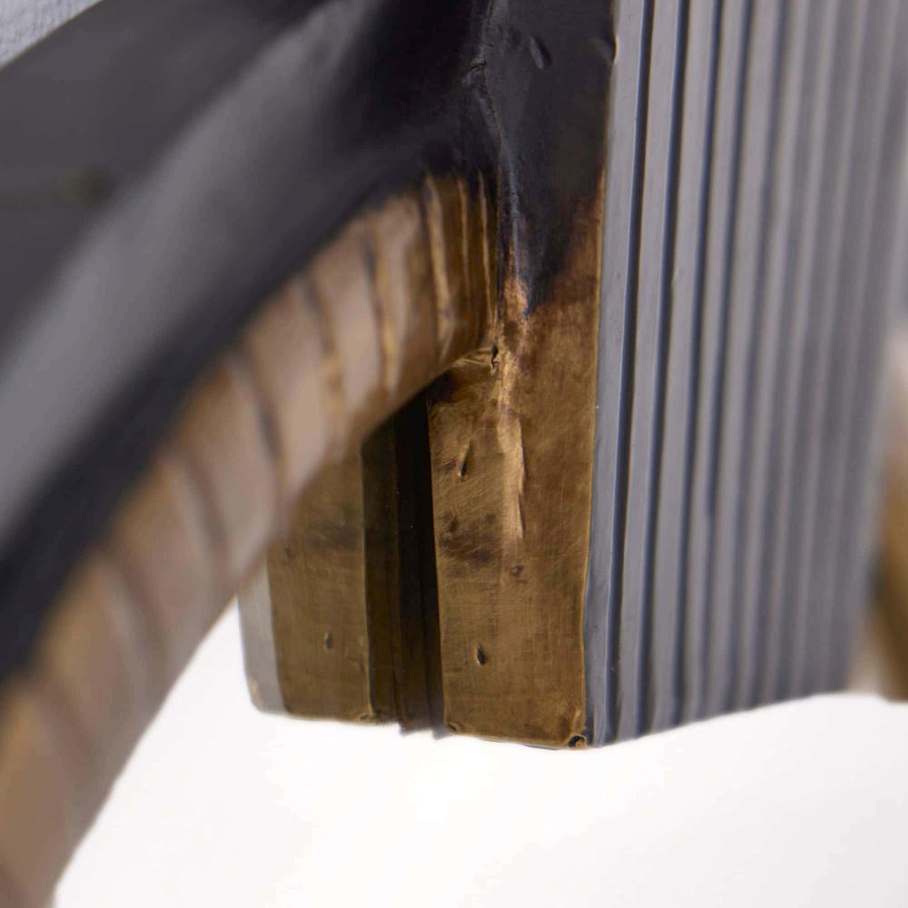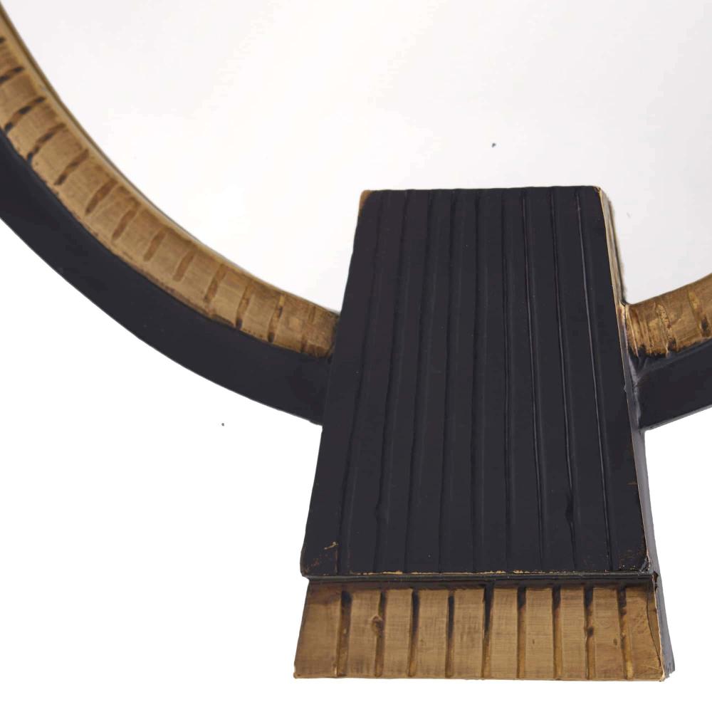 DRAWING INSPIRATION FROM HANDCRAFTED JEWELRY, THE TEDESCO MIRROR MAKES AN ECLECTIC ADDITION IN MODERN AND TRADITIONAL ENVIRONMENTS ALIKE. THE OVAL, HEIRLOOM-QUALITY ACCENT IS RENDERED IN EBONY WOOD, ADORNED WITH CARVED BAND OF ANTIQUE BRASS CLAD. THE PIECE IS CROWNED WITH A COORDINATING CARVED APPLIQUE. FITTED WITH A CLEAT FOR HANGING. FINISH WILL VARY.