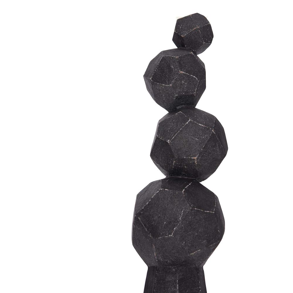 THE TOTEMIC WILMOT SCULPTURE IS DESIGNED IN A STACK OF FACETED, CHARCOAL TERRACOTTA SPHERES THAT BALANCE ON A CARVED PLINTH. INSPIRED BY GEODESIC DOMES, THE VERTICAL CERAMIC SCULPTURE IS AT ONCE EARTHY AND MODERN.