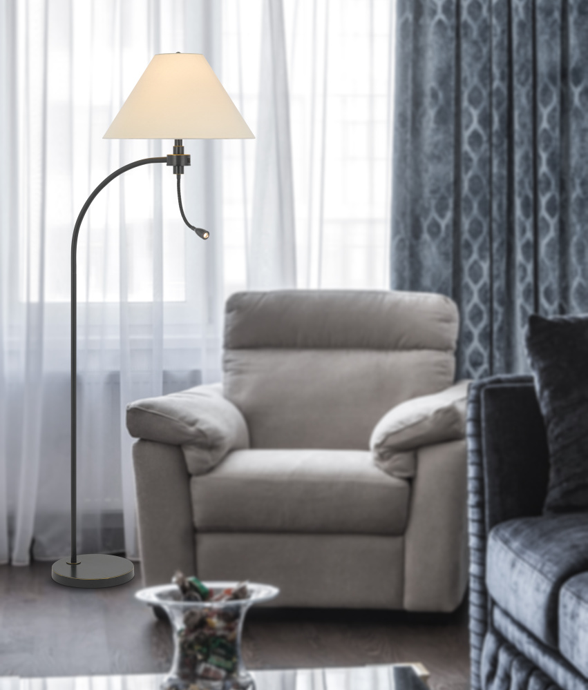 100W 3 way Ashland mini arc metal floor lamp with gooseneck 2W led reading light
