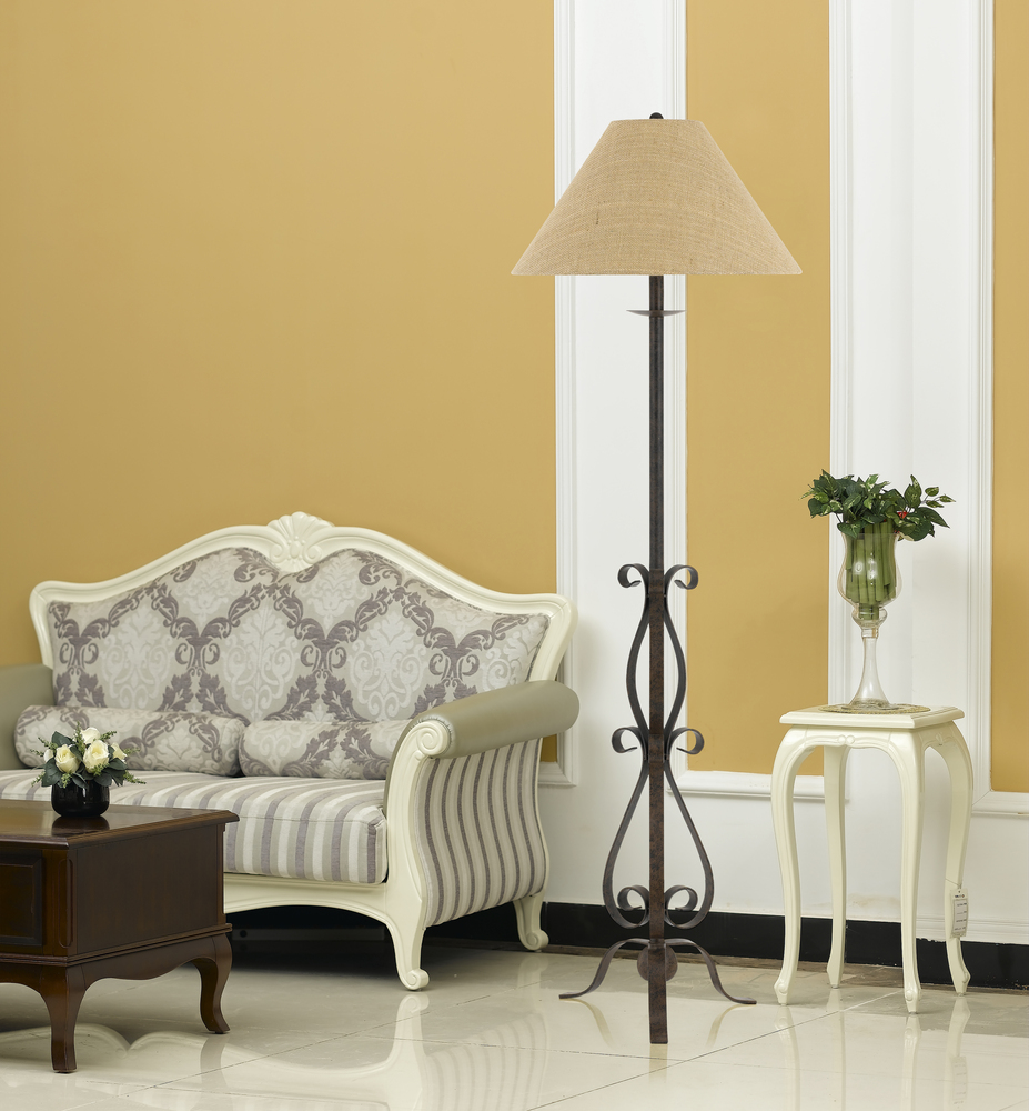 150W 3 Way Ekalaka Wrough Iron Floor Lamp With Burlap Shade