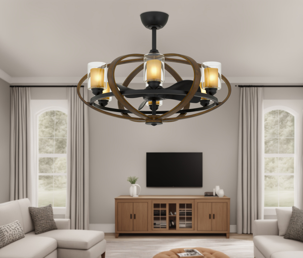 Remote controlled dimmable 8W LED E12 x 6. 6 speed Summervile Ultra Quiet Fan light with updraft