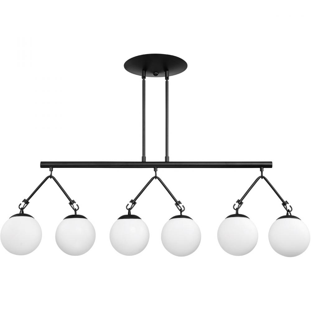 The prominent, geometric design of our Orion Collection won’t go unnoticed! The soft glow of illuminated white glass globes suspended from the pyramid-shaped frame will light up the room with stylish intensity.