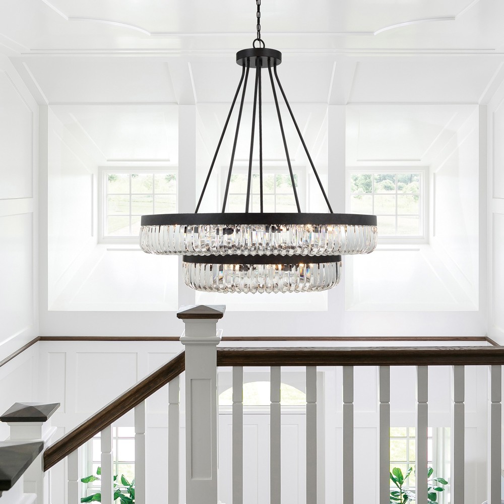 The Alister collection features unique U-shaped, hand cut crystals that give this industrial chandelier a soft and elegant refinement.