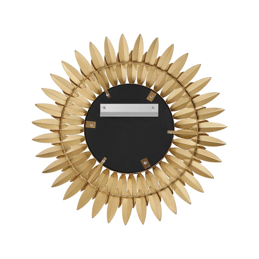 Inspired by Crystorama’s iconic Broche Collection, this stunning mirror brings sculptural artistry to wall décor. The mirror features a radiant sunburst design with hand-forged metal leaves arranged to evoke elegance and organic beauty. The intricate leaf-shaped detailing channels a refined sense of nature-inspired aesthetics, adding warmth and charm to any interior. This mirror is ideal as a focal point in entryways, living rooms, or bedrooms, and it pairs beautifully with contemporary and classic design styles.