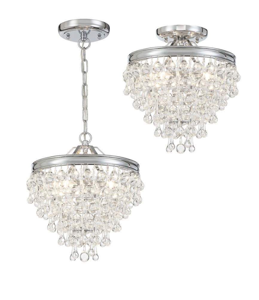 Elegance and glamour will illuminate the room with the Calypso collection. Draped in an abundance of smoothed shaped clear drops and balls, this contemporary collection is a perfect statement to a living room, dining room, bathroom, or entry.