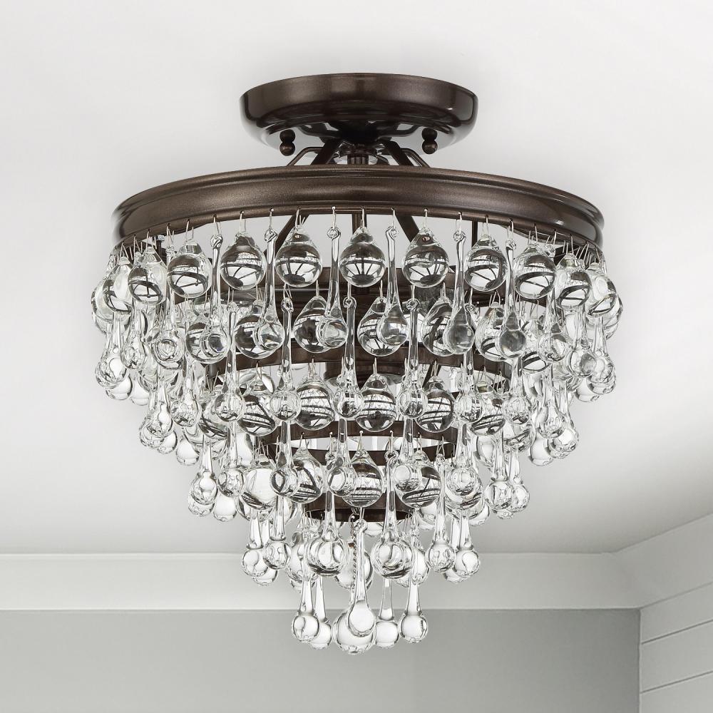 Calypso 13'' Crystal Teardrop Vibrant Bronze Semi Flush Mount
