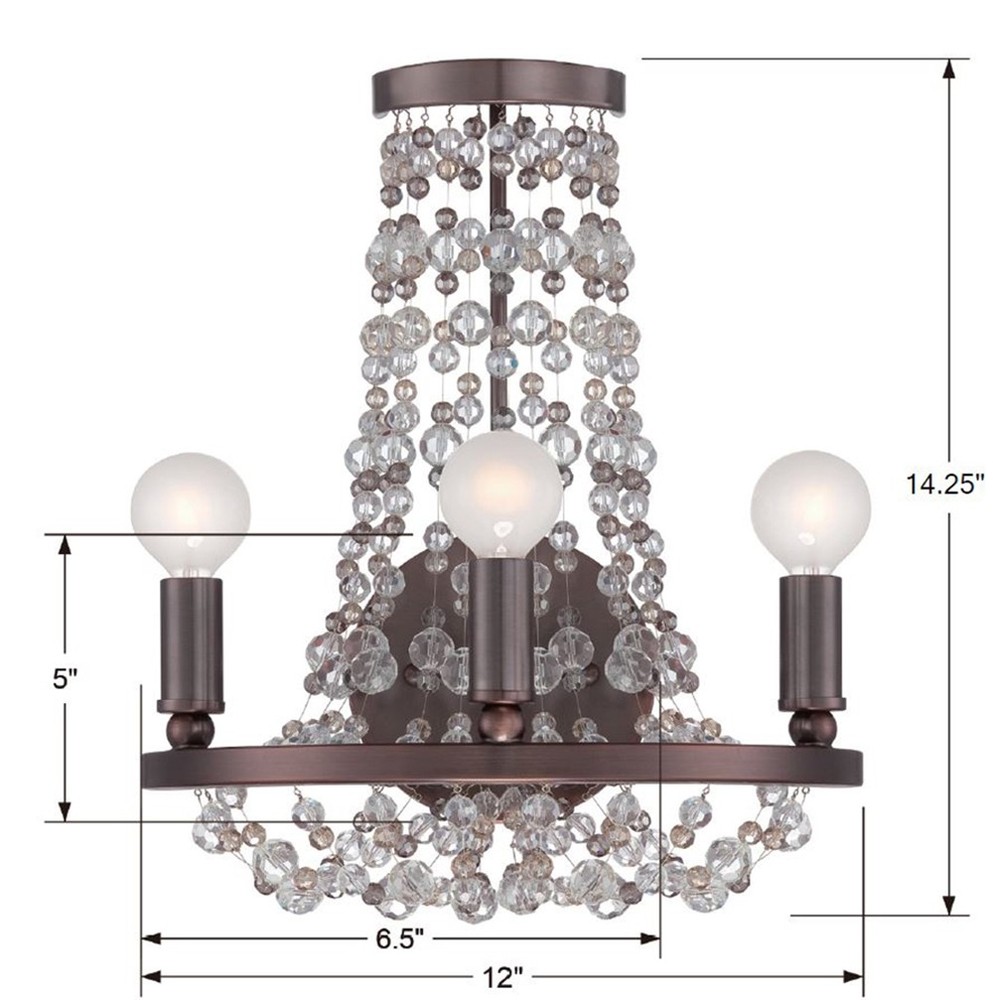 Inspired by jeweled necklaces, the Channing collection is a chic accent for your elegant home. With draped crystals of varying sizes and colors beaded between golden teak, golden shadow and clear beads, and finished in a chocolate bronze the collection offers a unique design. This fixture is perfect for a grand hall way or even a quant living room. Either way this stunner will add a transitional accent to any space.