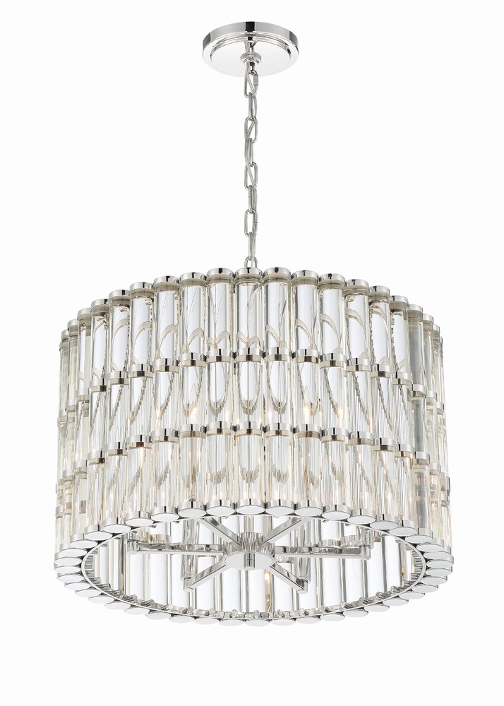 The Elliot collection features clear glass rods that are thick and smooth, creating brilliant light refraction.