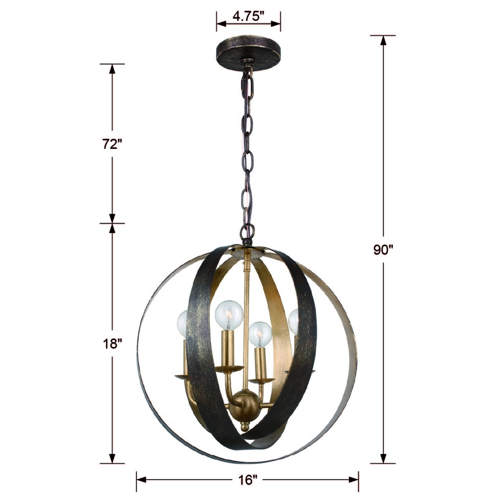 Luna 16'' English Bronze + Antique Gold Chandelier