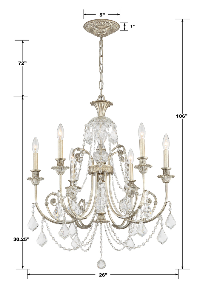 Regis 6 Light Clear Italian Crystal Olde Silver Chandelier