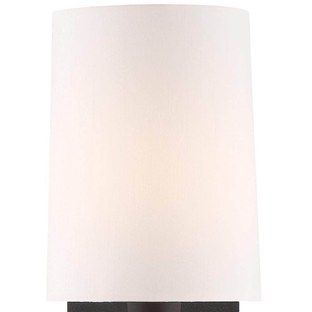 Both timeless and transitional, the minimalist design makes the Trenton ideal for any space in the home. Sleek white silk shade and slender hourglass metal tail makes an immediate impression in any room. Mounted on a rectangular back plate, this light from the Trenton Collection is a fresh twist on a classic silhouette.