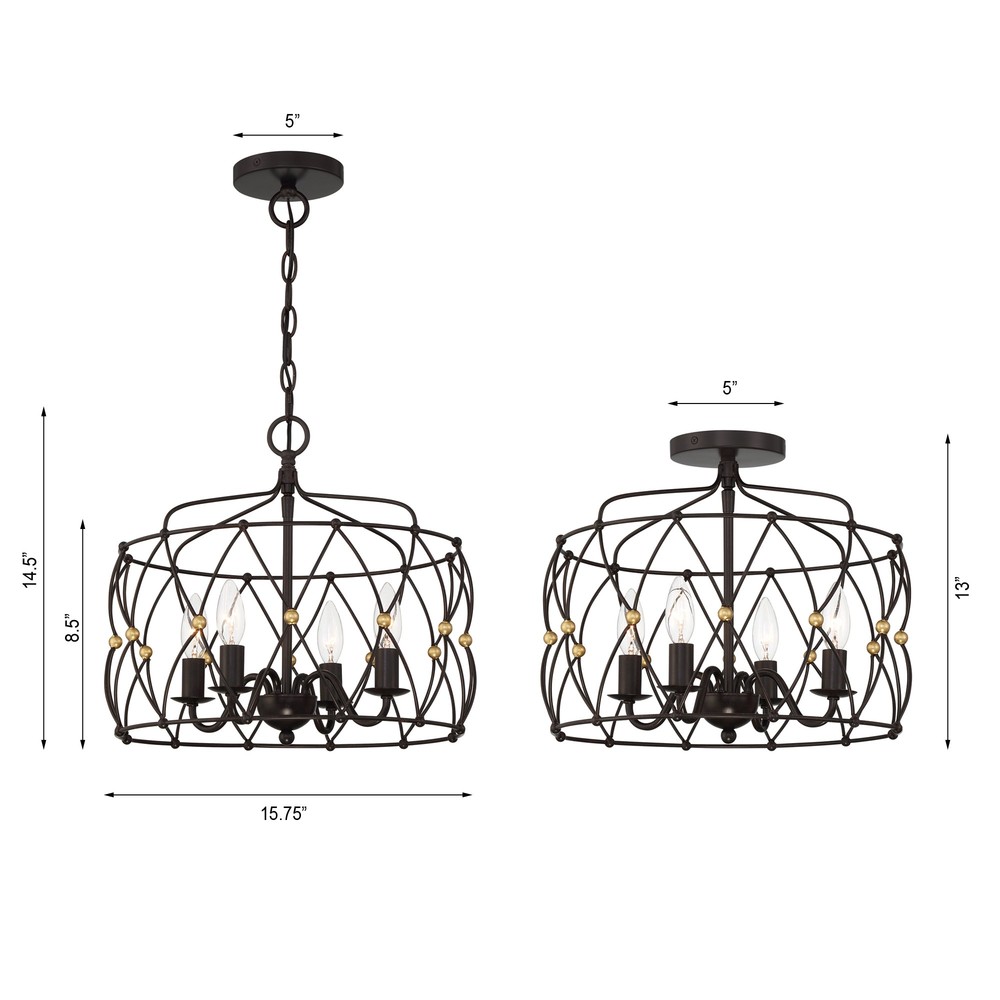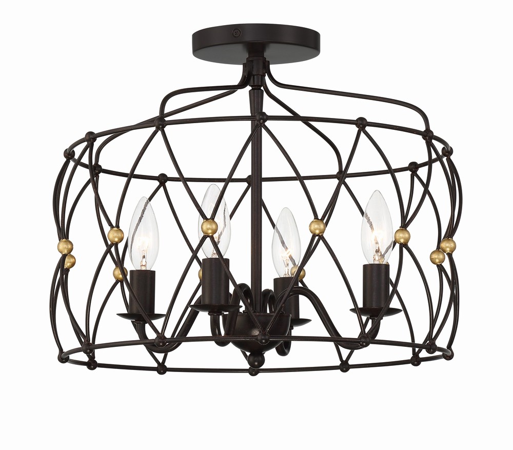 Zucca 16.5'' English Bronze + Antique Gold Semi Flush Mount