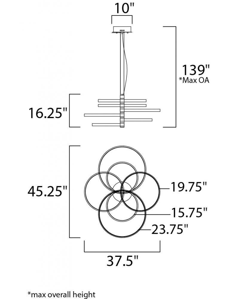 Rings of various sizes finished in Black are supported from a column of soft Gold. This European classic is a soft contemporary design which works in today's home decor.