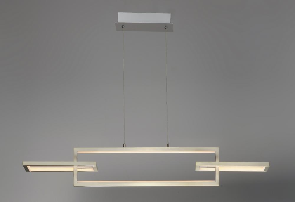 Chain links of Satin Nickel are illuminated internally by encased LED light. The suspending frames are adjustable to create different expansions of the linear pendants and flush mounts. A coordinating wall sconce completes this streamlined contemporary col