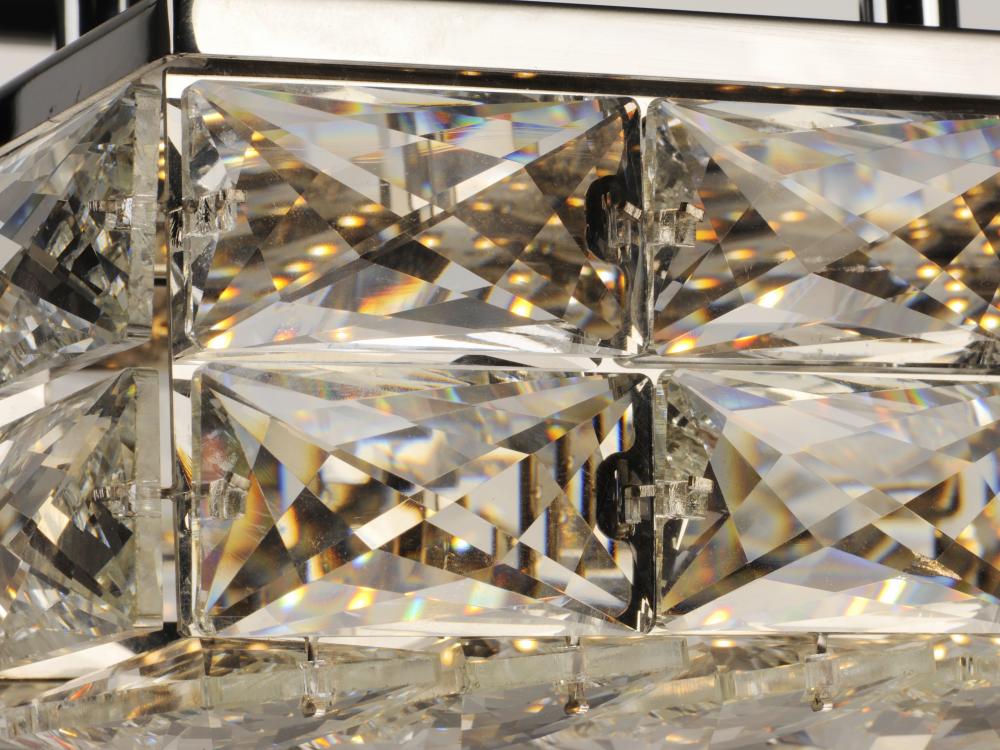 Rectangular Beveled Crystals are banded together to form soft square cylinders which are illuminated by LED that creates a brilliant lighting effect. Some items include metal chassis of Black which frame the crystal for a beautiful silhouette.