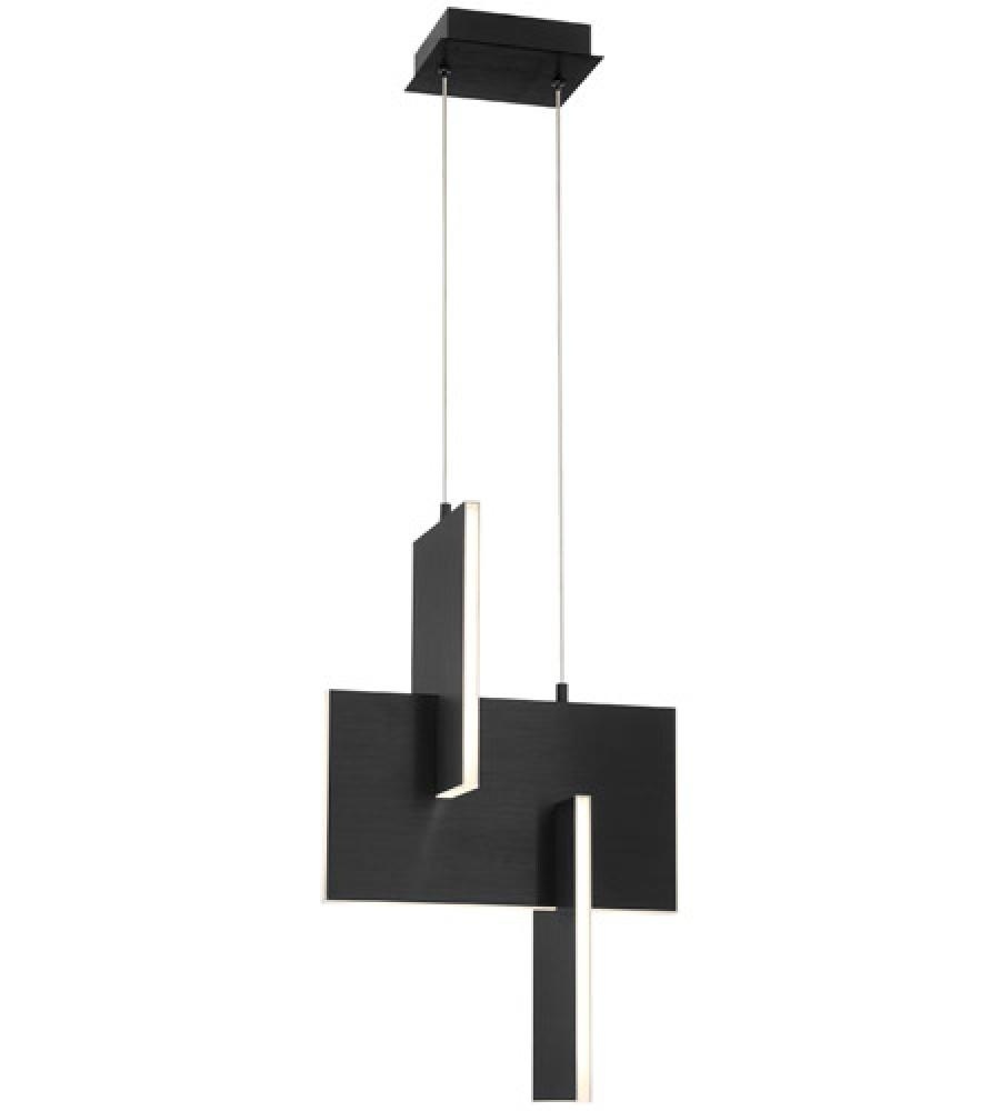 Slim, edge-lit LED panels are creatively positioned to intersect in a dynamic, whimsically modern design. A continuous run of LED lights delivers seamless, multi-directional lighting. The interlocking aluminum panels are laser cut for added precision and anodized to create a durable, corrosion-resistant finish that’s available in either gold or black.