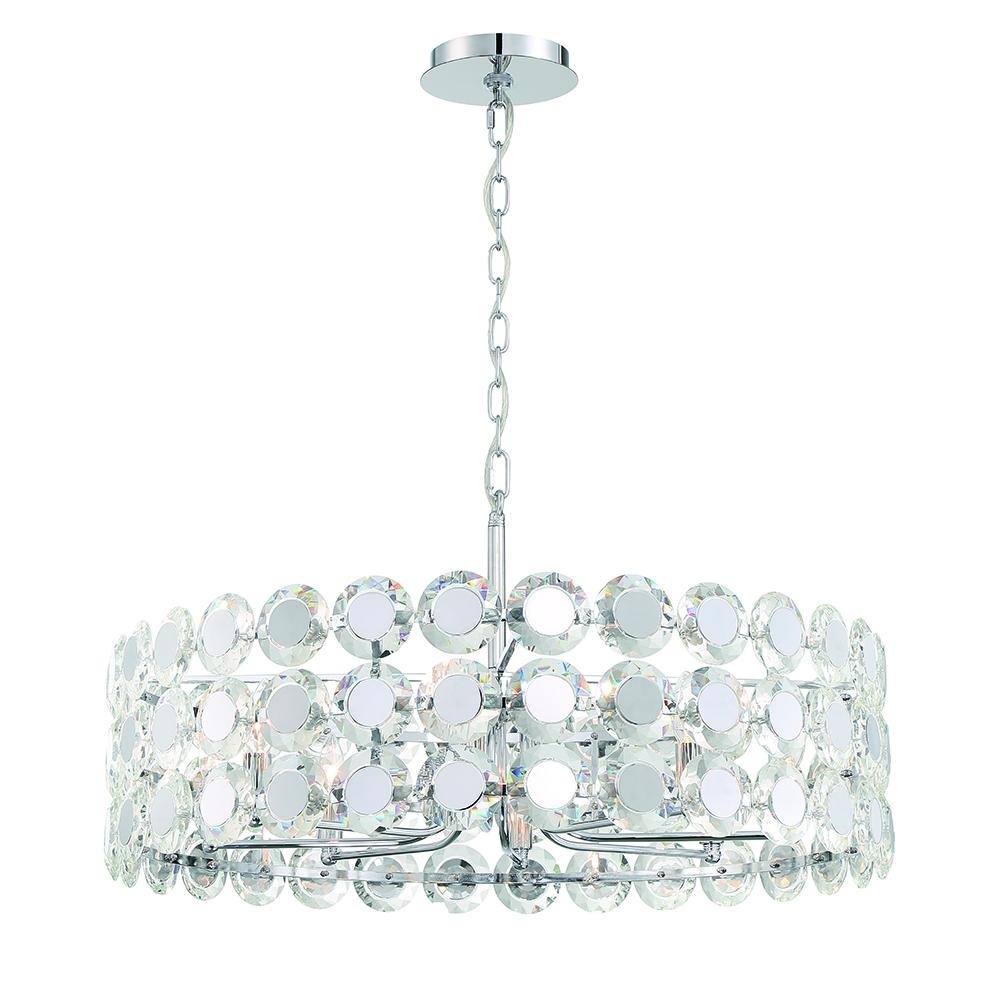 Our lavish Perrene collection is a true statement piece; ordained with coveted crystals, both sides showcase bevelled texture that brings dramatic elegance. The mirrored chrome center helps reflect the light for an even more opulent display of light. Indulge with the Perrene collection today.