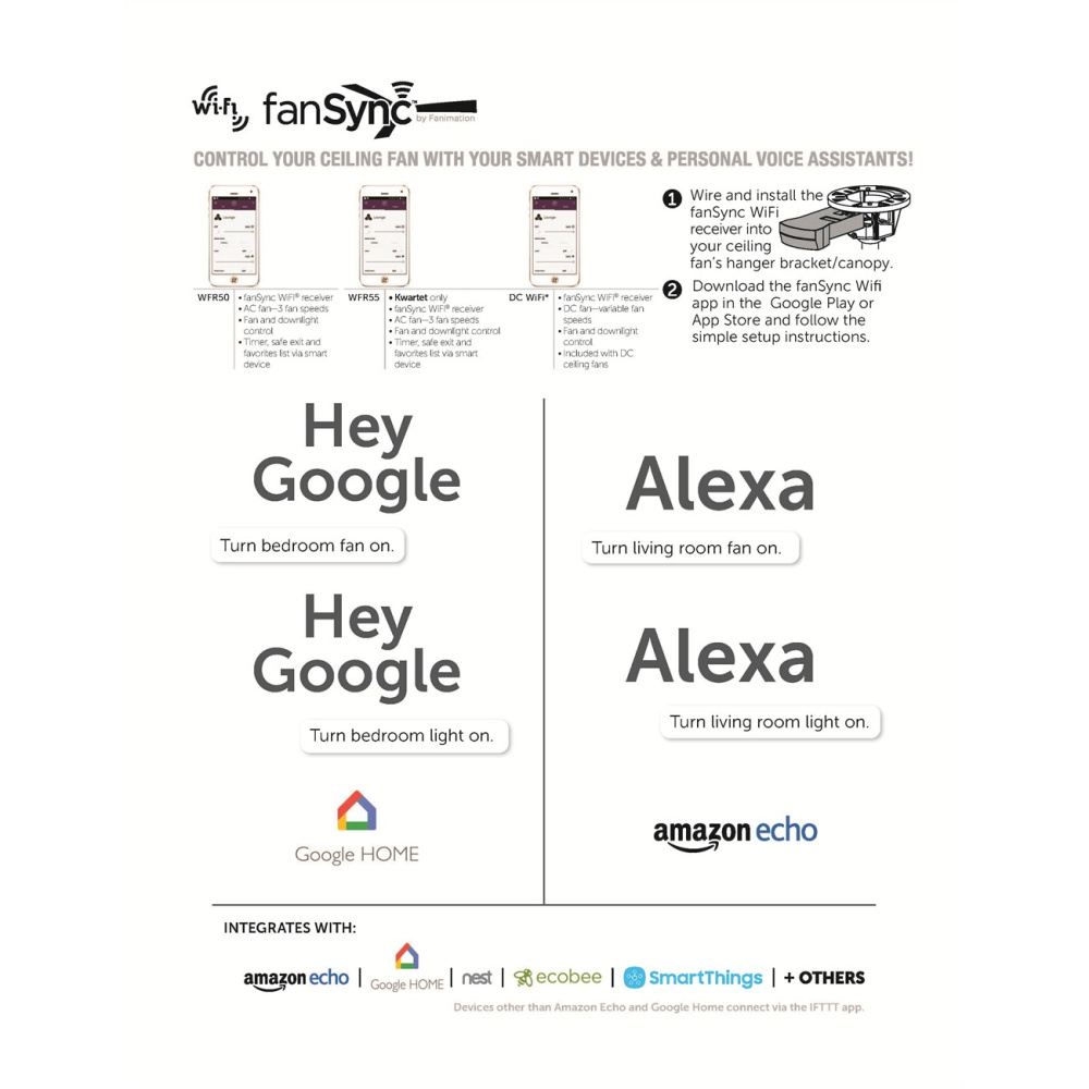 TECHNOLOGY: Includes fanSync Wi-Fi connectivity, allowing the fan to pair with most smart home devices