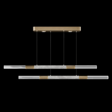 Suspended by adjustable cords, this LED fixture features straight tubular lines and the inclusion of metals carefully handcrafted to transition from parchment to magnificent glass, culminating in a stunning beam of light. Available in a wide range of exquisite finishes, including our five standard finishes and our newest Soft Ombre Bronze & Soft Ombre Silver, with choice parchment colors. Also available with no parchment. Upper & lower lights can be wired independently for single or dual light control.