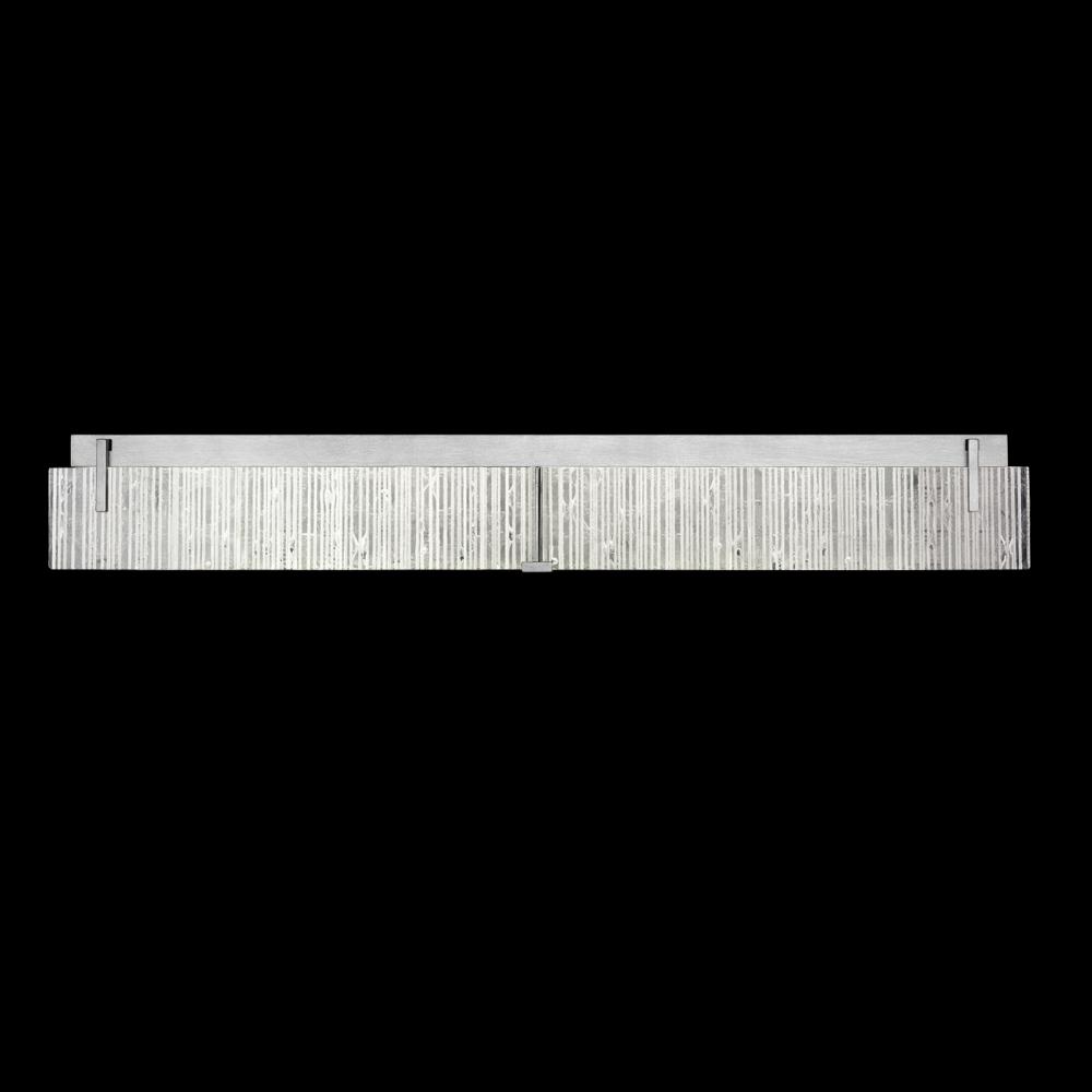 Luxury bath fixture featuring “Rake” cast glass. Inspired by Zen patterns formed with tiny pebbles, “Rake” combines monumental cast glass with deep hand carved patterns, perfectly captured by an array of hidden waterproof LEDs, giving the glass a truly contemporary feel to an ancient pattern. Choice of four finishes, champagne tinted gold leaf finish, silver leaf, bronze or hand rubbed black iron. For Indoor use only.