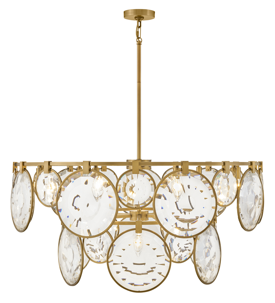 Nala is striking from any angle with a traditional silhouette and elegant eye-catching details. Multi-faceted, optic-crystal lenses surround the circular frame and attach with cast clips in Heritage Brass and Black finishes.