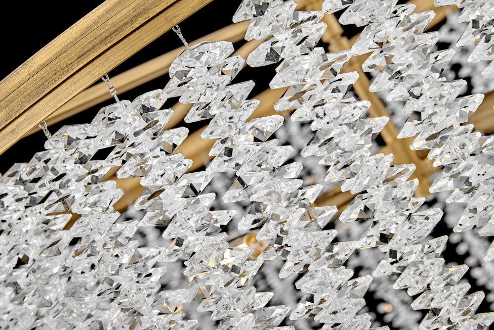 Dripping with glamour, Rubina’s magnificent shade is crafted from individually hung strands of sparkling crystal. A traditional tiered frame accentuates every beautiful refraction with its Burnished Gold finish.