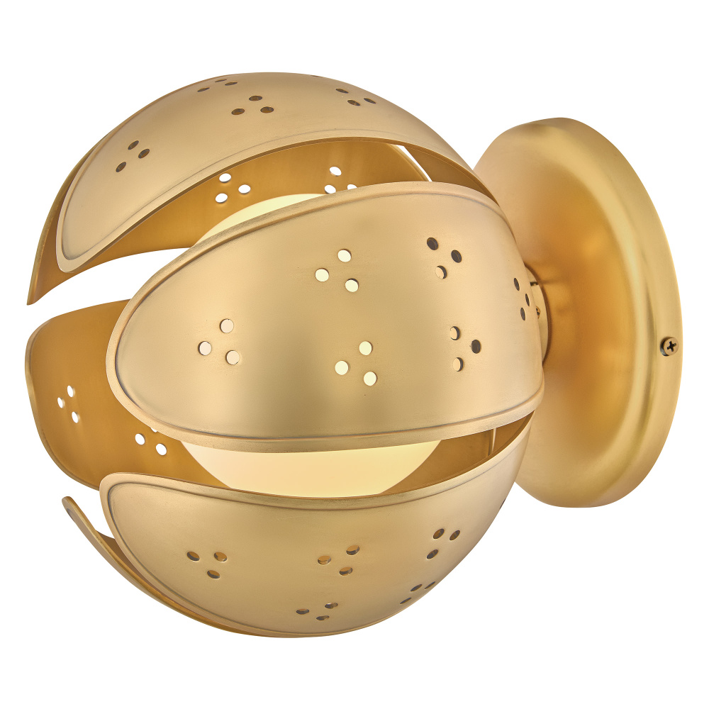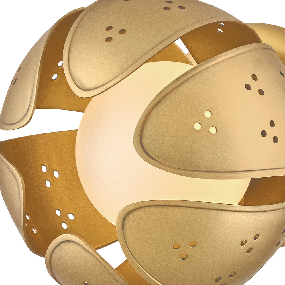 A work of luminary art, Anthos elevates its floral-inspired form with alluring illumination. Raised edge details and distinct perforations accentuate each blossom crafted from solid unlacquered brass petals. Radiant LED lamps enveloped by blown etched opal glass transform the surrounding space with a captivating interplay of light and shadow.