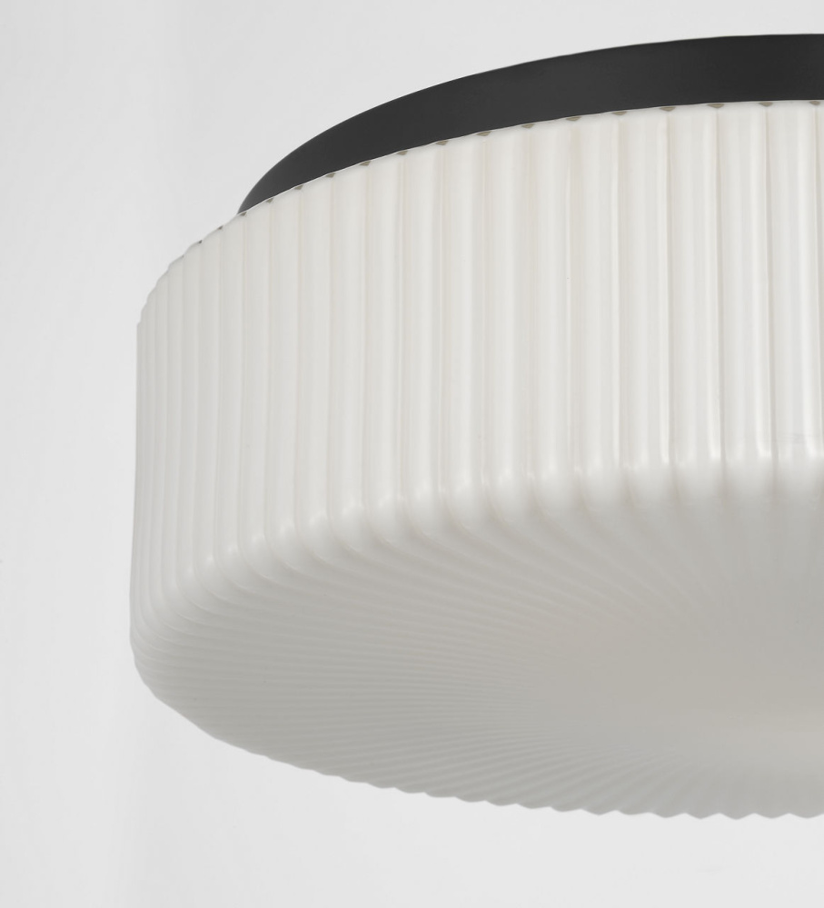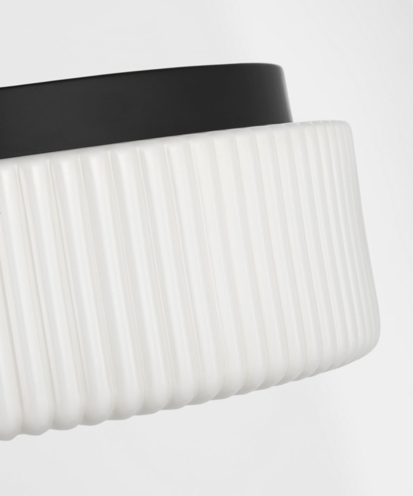 The Axira Two-Light Flush Mount features a decorative ribbed glass diffuser encircled by a slim metal accent band. Its textural surface creates a softened glow that works across a wide range of interiors, from traditional and transitional spaces to contemporary settings. Compact in scale yet visually distinctive, Axira provides versatile illumination for hallways, bedrooms, kitchens, or entryways.