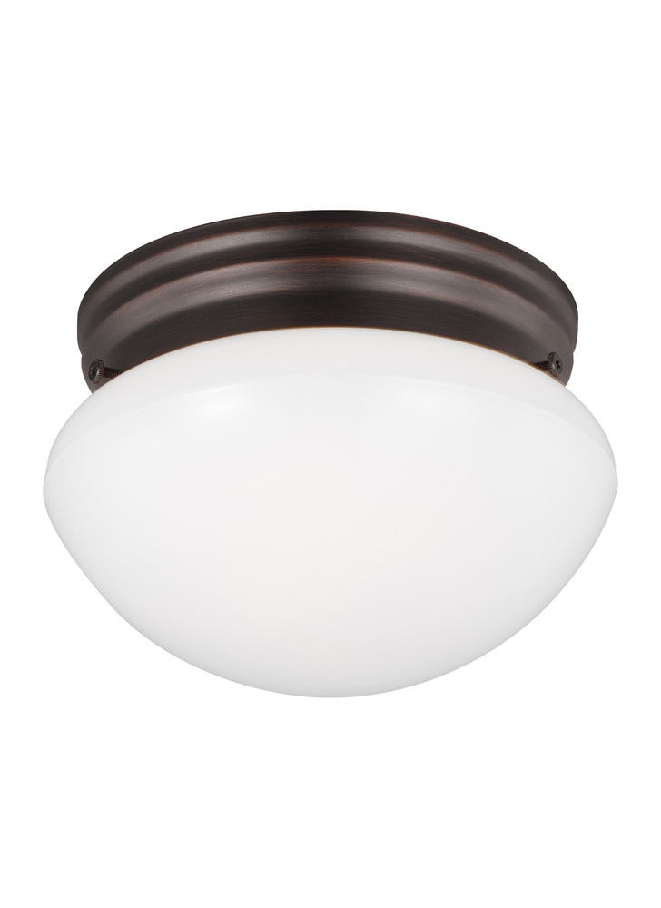 The Webster one light flush mount fixture in bronze enhances the beauty of your home with ample light and style to match today's trends. Webster wall and ceiling flush mount lighting fixtures by are ideal for use in foyers, hallways, bedrooms, utility work areas, stairways and many other locations as they can be installed either has ceiling or wall fixtures. Offered in White, Heirloom Bronze and Brushed Nickel are both the one-light and two-light fixtures. All the fixtures feature Smooth White glass to softly diffuse the light for a warm glow. All the fixtures easily convert to LED by purchasing LED replacement lamps sold separately.