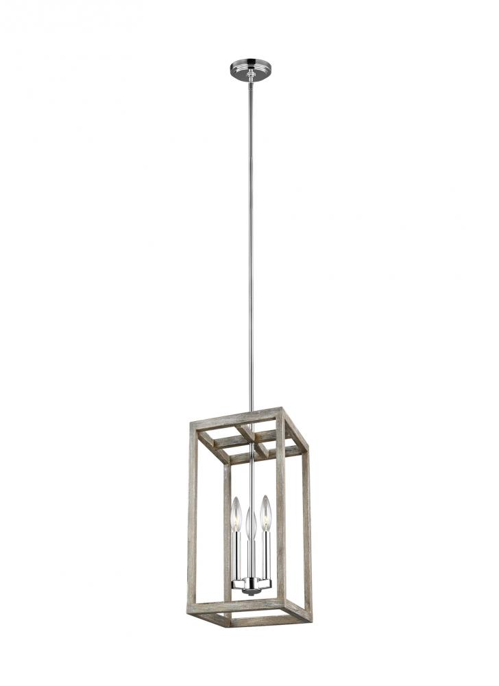 The Sea Gull Lighting Moffet Street Three Light Indoor Pendant In Washed Pine Supplies Ample Lighting For Your Daily Needs, While Adding A Layer Of Today'S Style To Your Home'S Décor. The Moffet Street Collection Offers A Distinctive Take On A Rustic Theme. Built In Broad Steel Frames With Hand-Applied Finish That Mimics Natural Wood. This Combination Of Rustic And Urban Fits Comfortably In A Wide Variety Of Environments. The Sharp, Squared Lines Of The Frame Complement A Wide Variety Of Settings. The Collection Includes Eight-Light Foyer, Four-Light Foyer, One- Light Wall Sconce, And A Six-Light Island Fixture. The Moffet Street Collection Is Available In Three Beautiful Finishes Washed Pine, Brushed Nickel And Satin Bronze All Fixtures Are California Title 24 Compliant And Damp Rated For Use In Sheltered, Damp Environments.