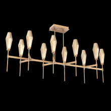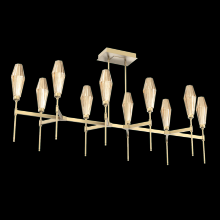 Aalto Linear Suspension - 67 - Gilded Brass - Optic Rib Blown Glass - Amber - Threaded Rod (24,12 (2x),6,3) - LED - 2700K