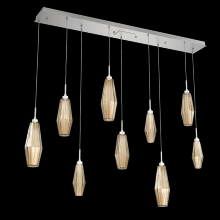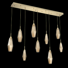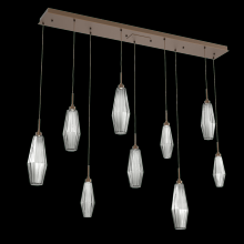 Aalto Linear Multi - Port - Matte Black - Optic Rib Blown Glass - Bronze - Cloth Braided Cord - LED - 2700K