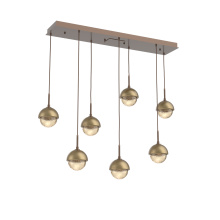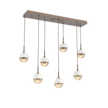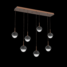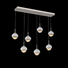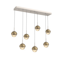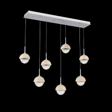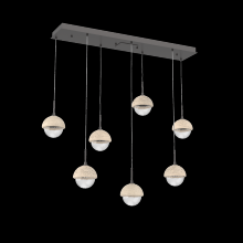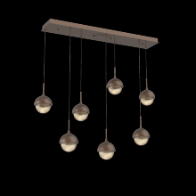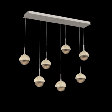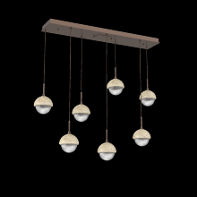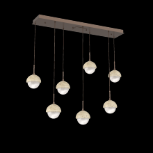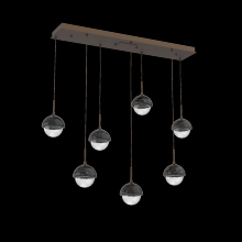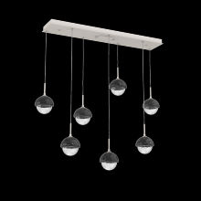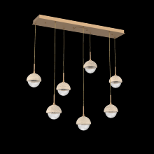 Capturing the visual intrigue of this time-honored gemstone style, the Cabochon Linear Pendant Chandelier is a sculptural fusion of polished stone, artisan blown crystal glass and metalwork. This captivating blend of tradition and modernity elevates transitional and modern spaces alike.
