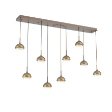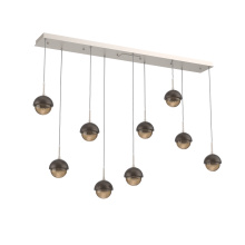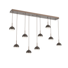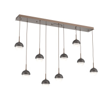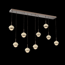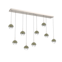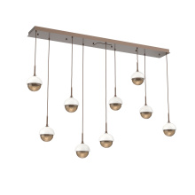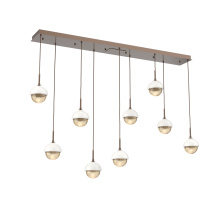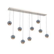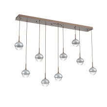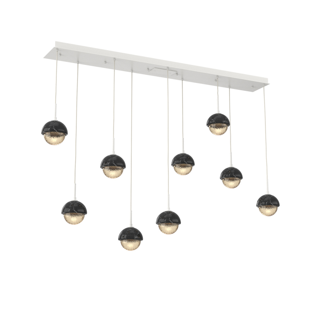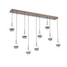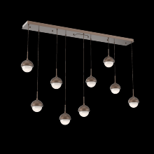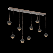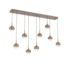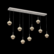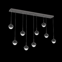 Capturing the visual intrigue of this time-honored gemstone style, the Cabochon Linear Pendant Chandelier is a sculptural fusion of polished stone, artisan blown crystal glass and metalwork. This captivating blend of tradition and modernity elevates transitional and modern spaces alike.