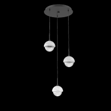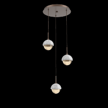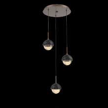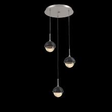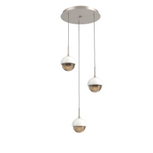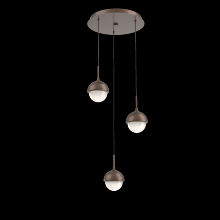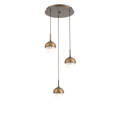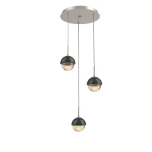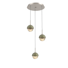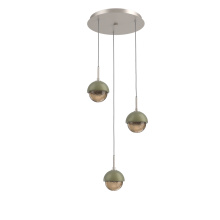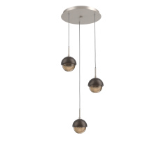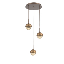 Cabochon 3pc Multi-Pendant-Gilded Brass-Clear Glass with Travertine-Cloth Braided Cord-LED 3000K