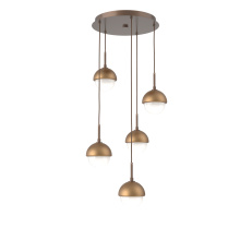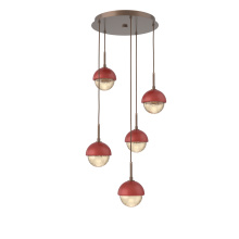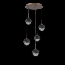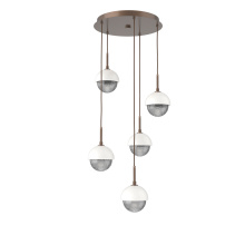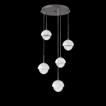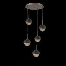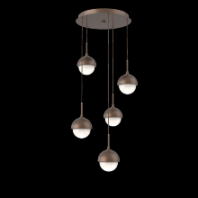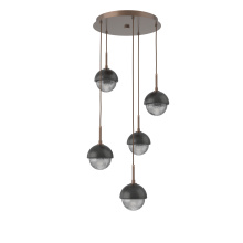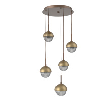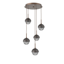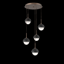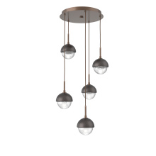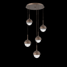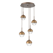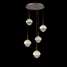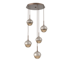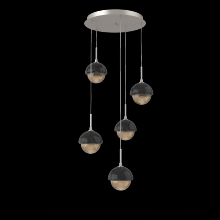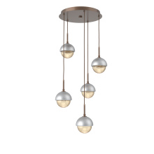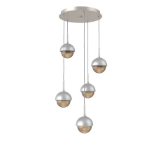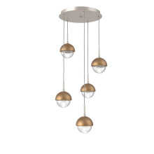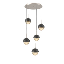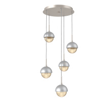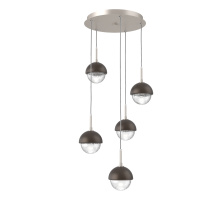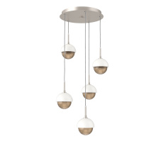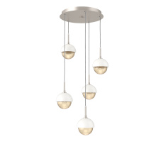Cabochon 5pc Multi-Pendant-Beige Silver-Clear Glass with Travertine-Cloth Braided Cord-LED 2700K
