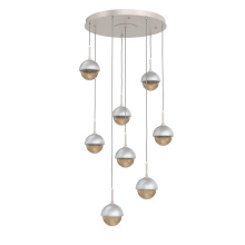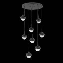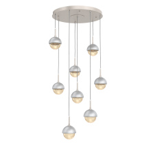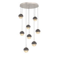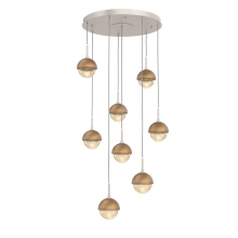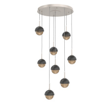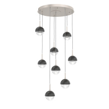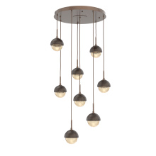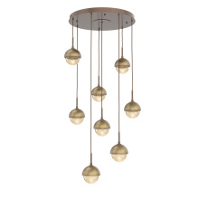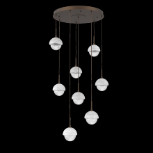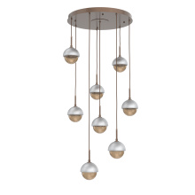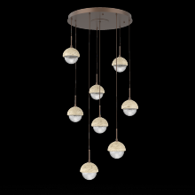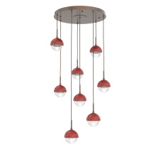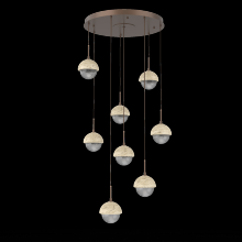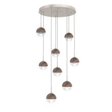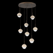 Cabochon 8pc Multi-Pendant-Burnished Bronze-Clear Glass with White Marble-Cloth Braided Cord