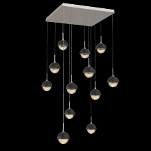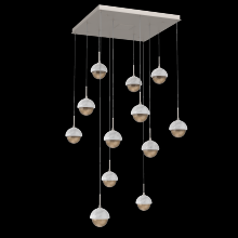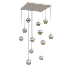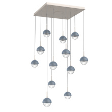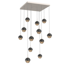 Cabochon 12pc Multi-Pendant-Beige Silver-Clear Glass with White Marble-Cloth Braided Cord-LED 3000K