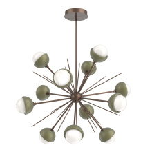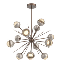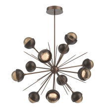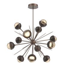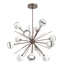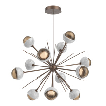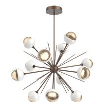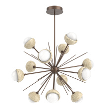 The Cabochon Starburst Chandelier elevates a familiar silhouette with a fresh modern update to the visual intrigue of this time-honored gemstone style. The sculptural fusion features artisan blown crystal glass and polished stone or metalwork in a colorful selection of single and two-tone finishes.
