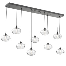 Coppa Linear Multi - Port - Metallic Beige Silver - Bronze Optic Blown Glass - Cloth Braided Cord - Incandescent E26 Socket