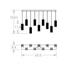 Downtown Mesh Linear Multi - Pendant - Metallic Beige Silver - Frosted Glass - Cloth Braided Cord - Incandescent E26 Socket