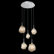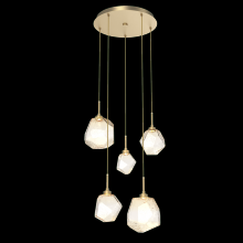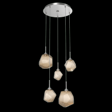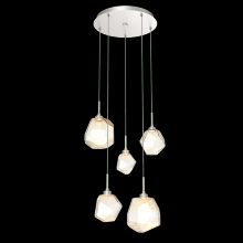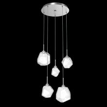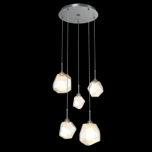 Gem Round Multi - Port - Matte Black - Clear Blown Glass - Cloth Braided Cord - LED - 2700K