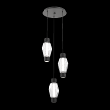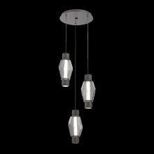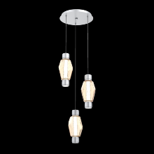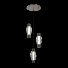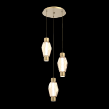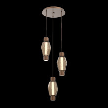 Mandrel Round 3pc Multi-Pendant - Gem-Gilded Brass-Bronze Blown Glass-Cloth Braided Cord-LED - 3000K