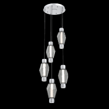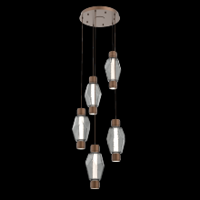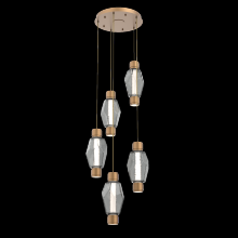 Mandrel Round 5pc Multi-Pendant - Gem-Gilded Brass-Amber Blown Glass-Cloth Braided Cord-LED - 3000K