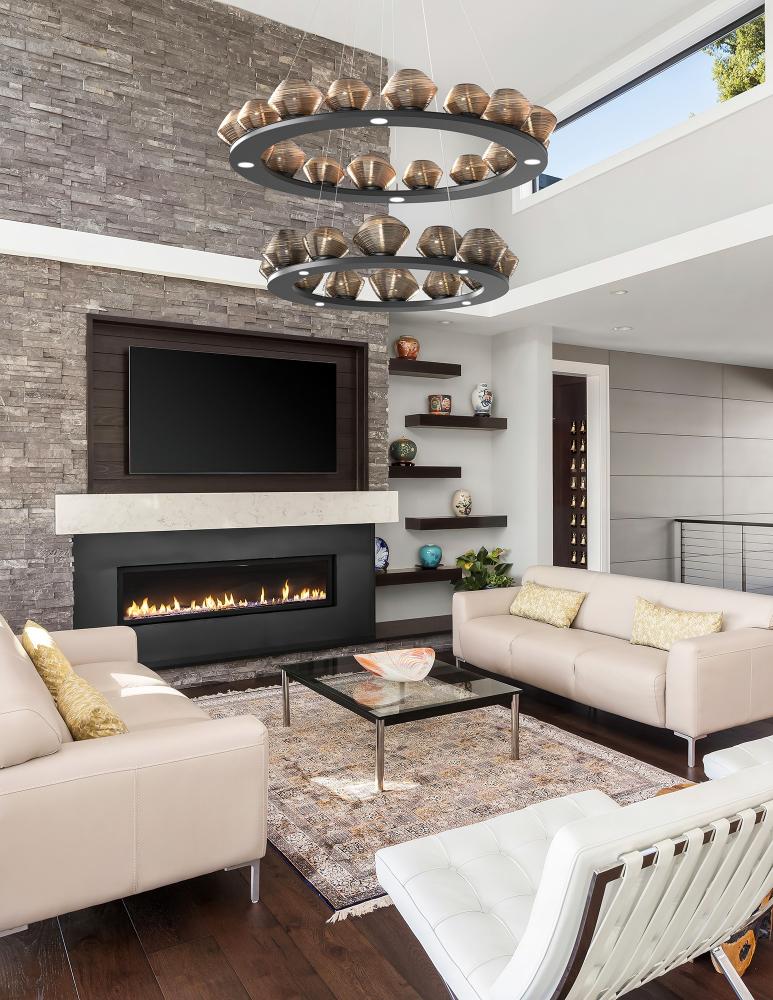 Mesa 36" & 48" Two - Tier Ring - Oil Rubbed Bronze (Translucent) - Clear Blown Glass - Stainless Cable - LED - 2700K
